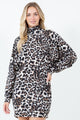 Stay on trend with our Margaret Cheetah Sweater Dress! This mini dress features a fierce cheetah print, drop shoulders, and a high neckline for a chic and oversized look. Stay warm and stylish this season with this playful sweater dress.
